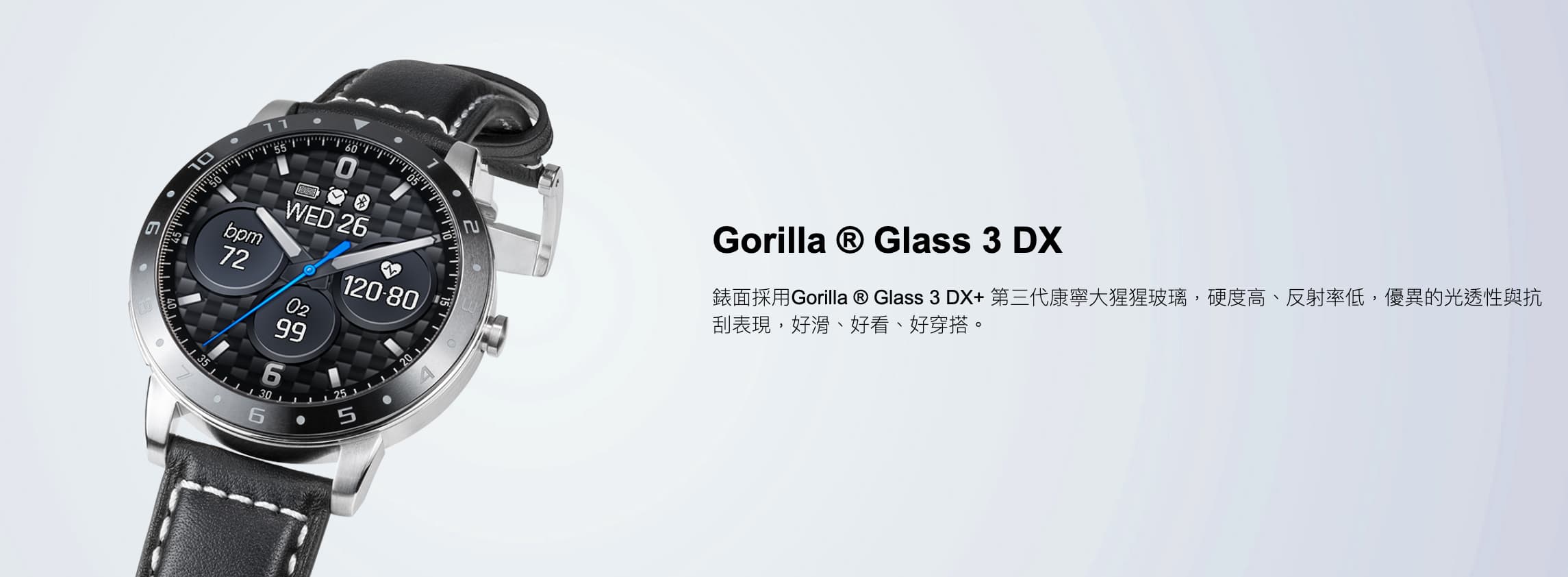 【重量】52 g (不包含錶帶與錶扣), 74 g (包含短版錶帶與錶扣)
