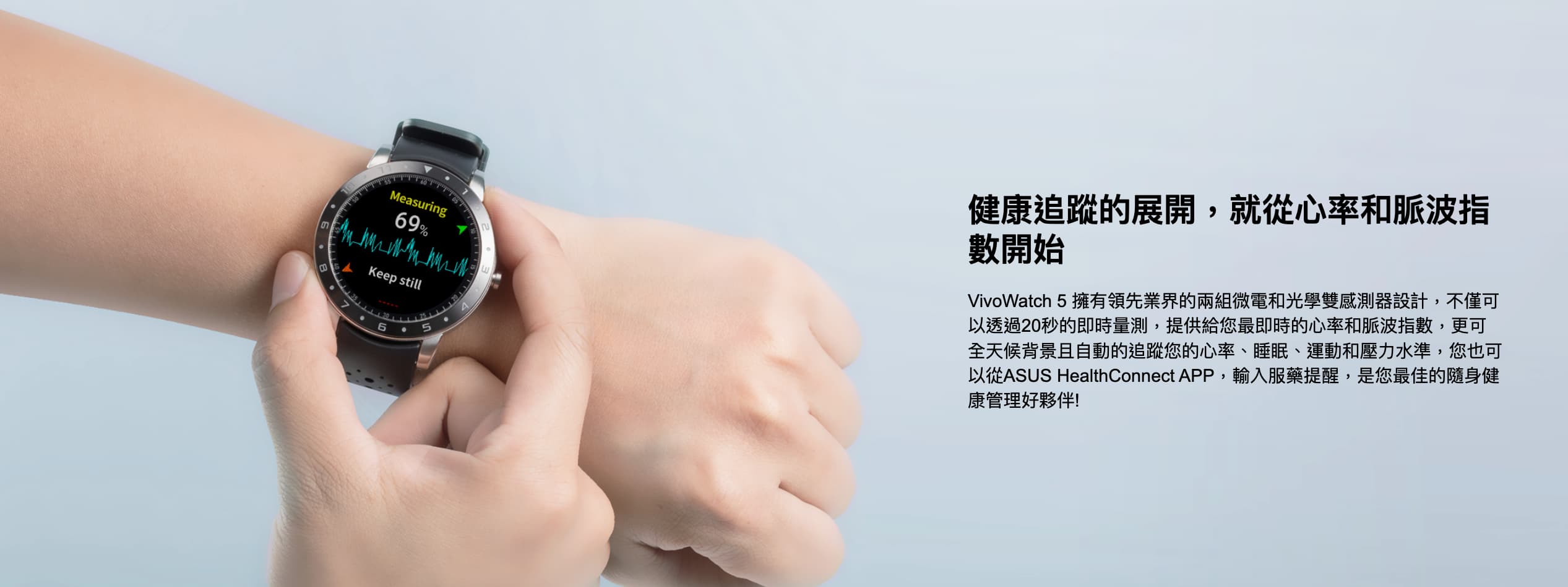 -  ASUS VivoWatch SP並非醫療器材無宣稱療效亦無血壓心電圖量測功能,運動活動心率、Pulse O2運動血氧、情緒壓力及其他相關指數資訊僅供參考。請勿根據資訊診斷或調整藥物,應依照醫師的指示和規定。
