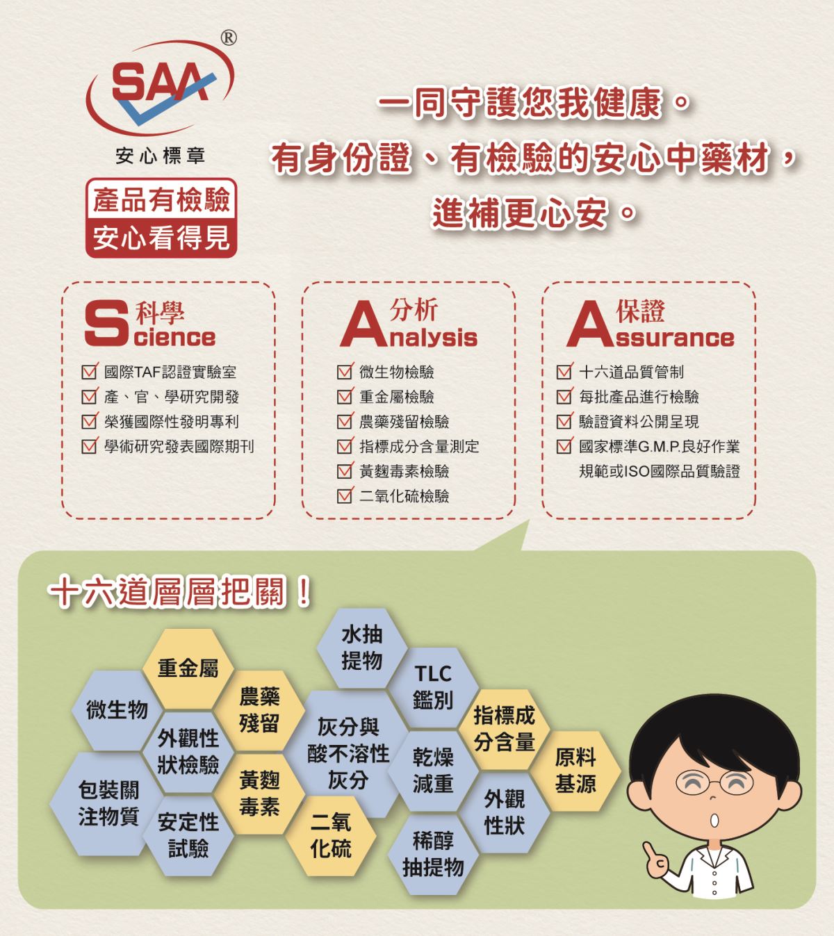 ❶ SAA安心薏苡仁每一批需依據台灣中藥典