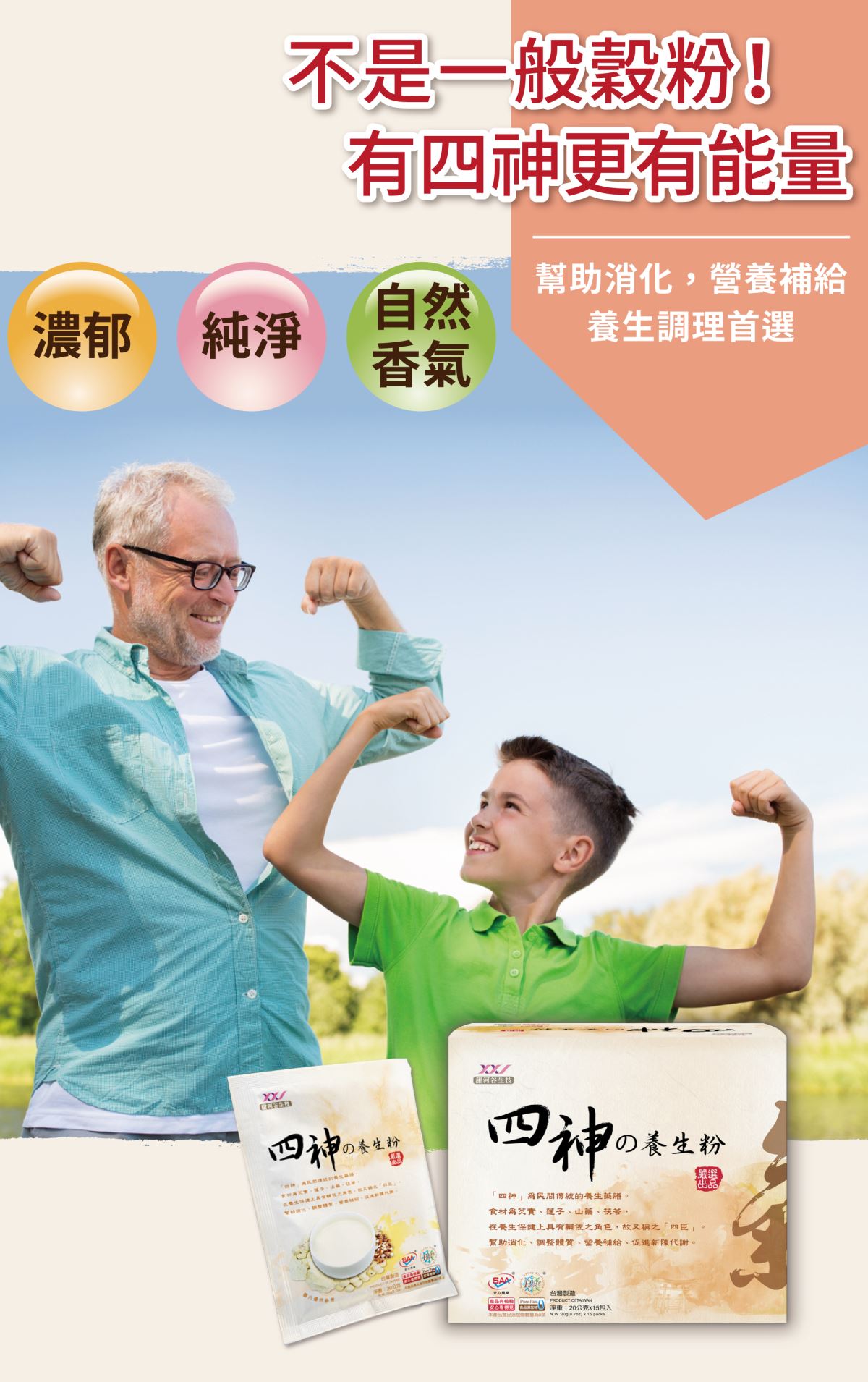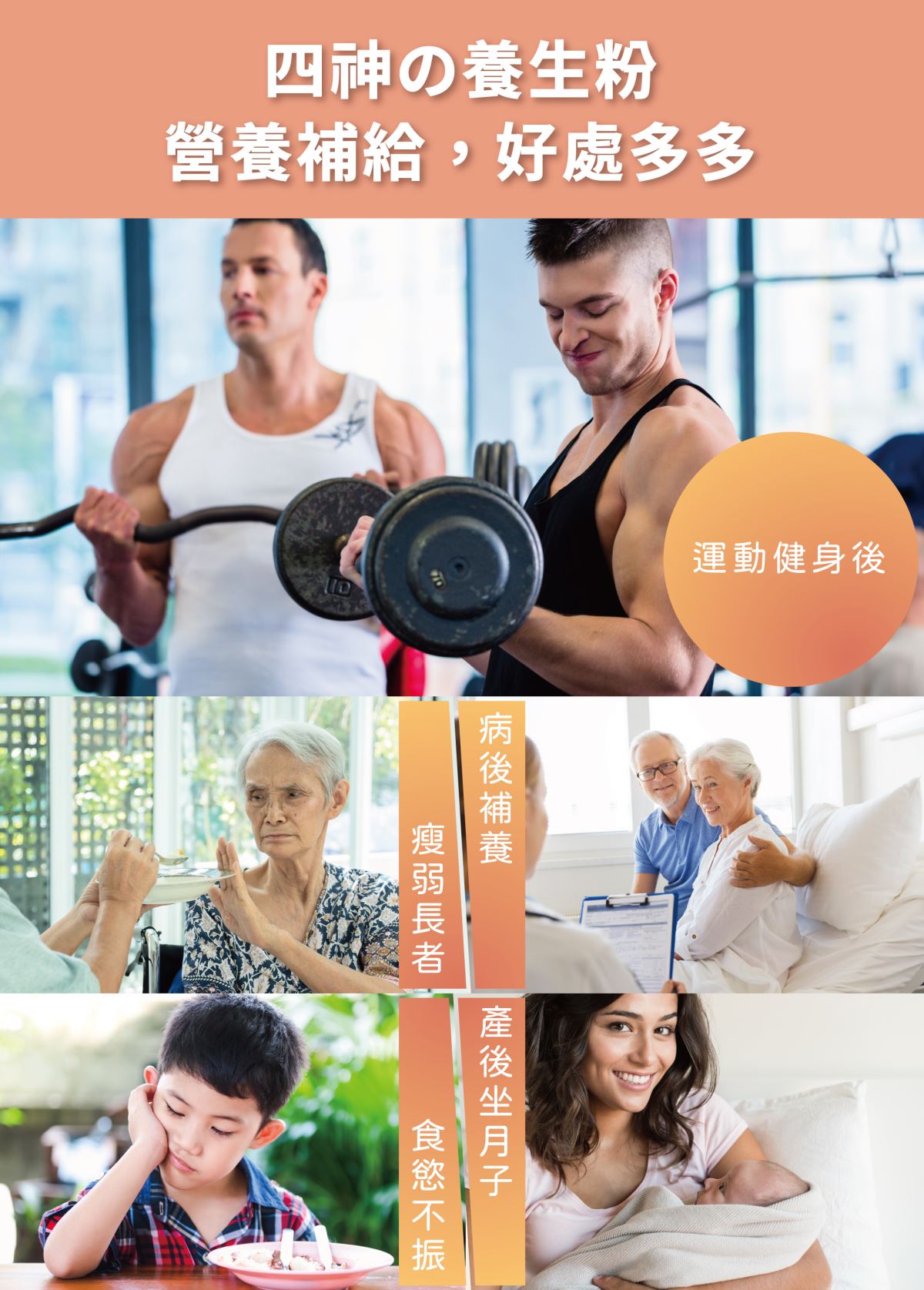 ❷ 四神粉具有與一般穀粉不同的功效,對於食慾不佳的銀髮族、學童,或需久站、坐月子期間等族群都非常適合補充。