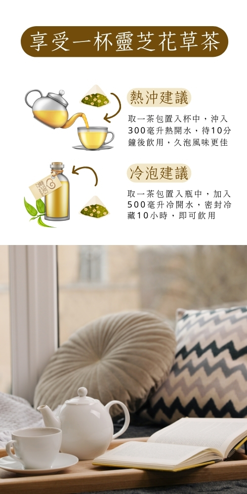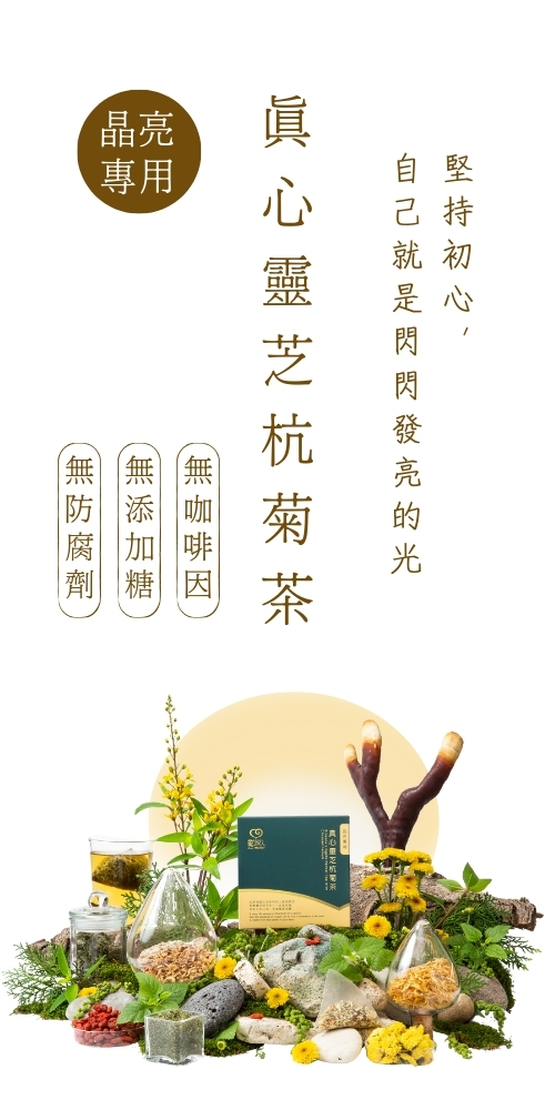 真心靈芝杭菊茶 ( 3入輕巧盒、10入經濟包)|無咖啡因、無添加糖、環境友善PLA玉米纖維三角茶袋