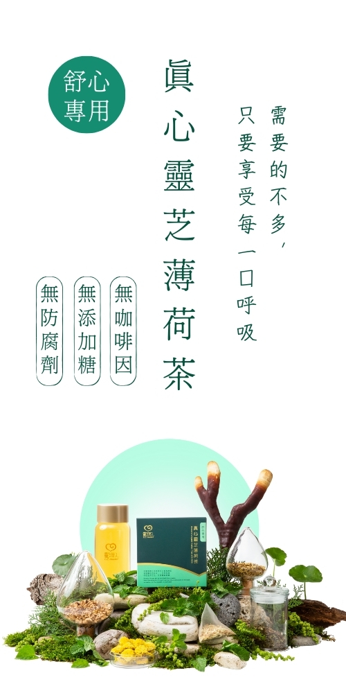 真心靈芝薄荷茶 ( 3入輕巧盒、10入經濟包)|無咖啡因、無添加糖、環境友善PLA玉米纖維三角茶袋