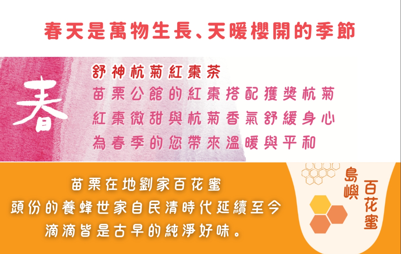 這款好客禮盒,不僅傳承了三代客庒中醫師的智慧,更遵循天意、食當令,讓您在順應節氣的養生活中,感受到在地的好運與福氣。隨著地球暖化和氣候變遷,我們以在地花草茶為載體,依春夏秋冬四大節氣,為您帶來自然與健康的養生之道。