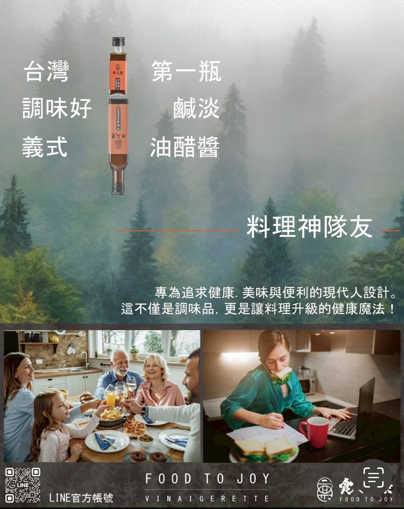 • 健康:高品質的油醋搭配舒壓食材,為健康生活加分。
