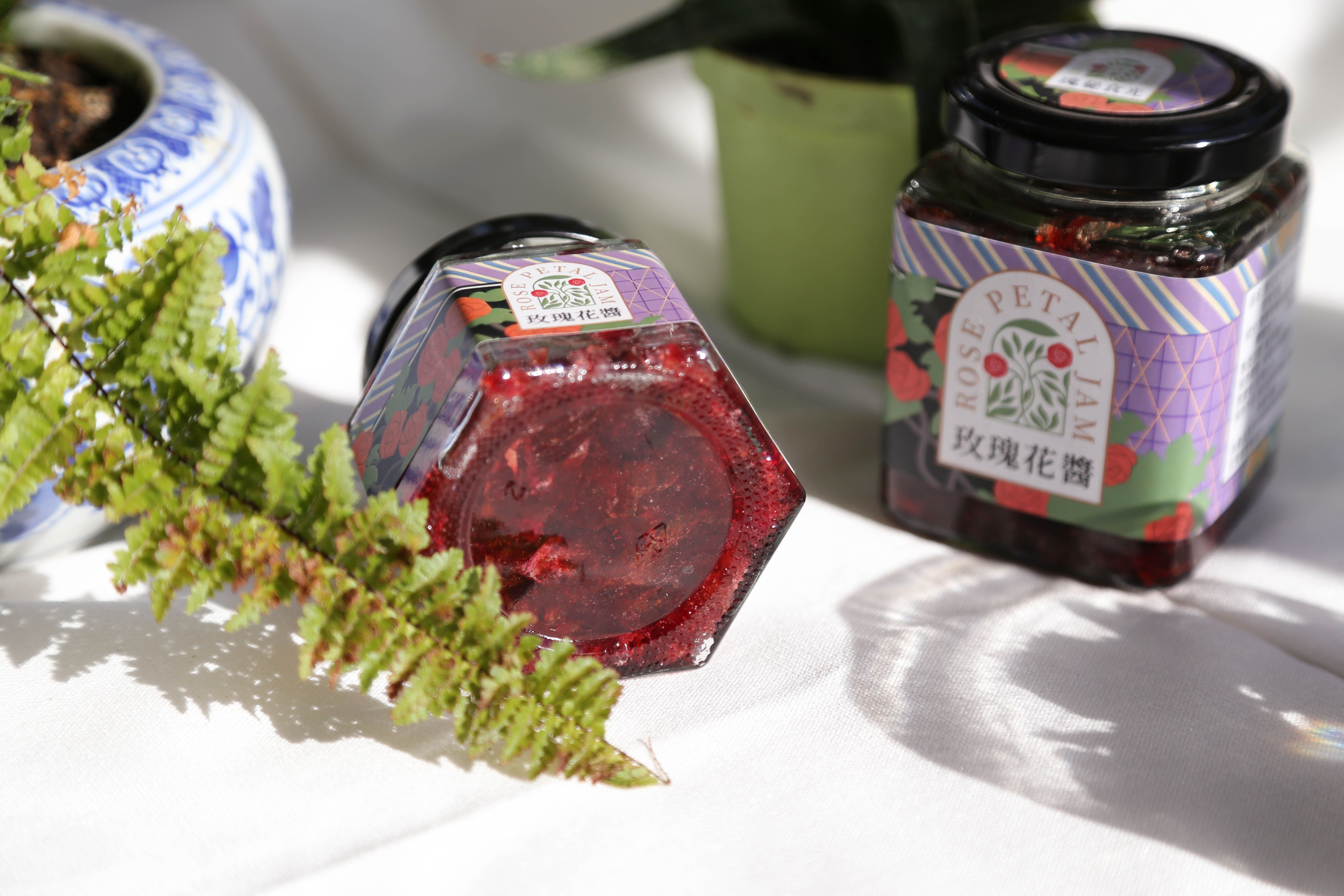 台灣農場栽種的有機玫瑰花,採摘後和糖進行手工捶打,自然發酵,