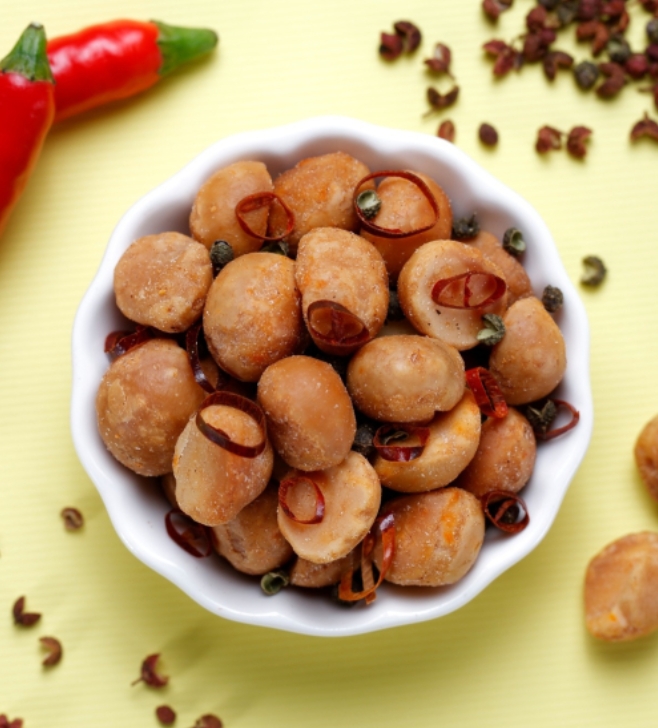 我們的麻辣夏威夷果搭配的是經典的川味麻辣風味,花椒的麻、朝天椒的辣,每一口都能帶給你味蕾的驚豔。不僅辛辣爽口,還有夏威夷果天然的香氣,這種麻辣、酥脆與香氣的完美融合,讓人忍不住一口接一口。