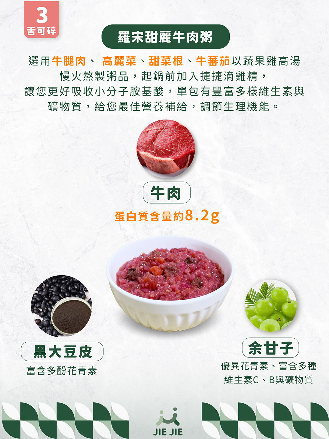 |蔬果雞高湯熬製粥底+捷捷滴雞精,給您雙重好營養