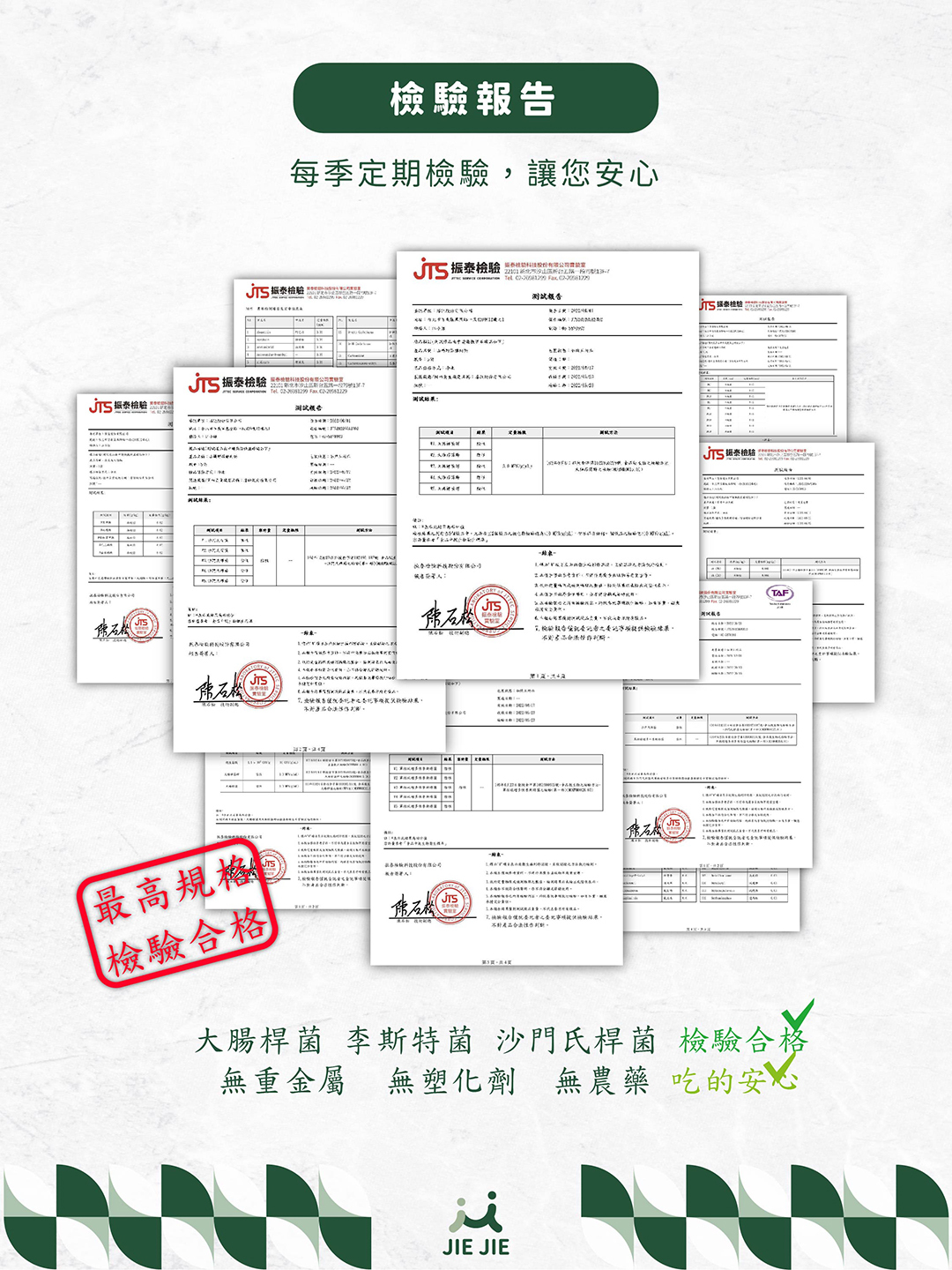 每季會根據不同食材與時事話題送外檢驗,並附上相關檢驗報告。