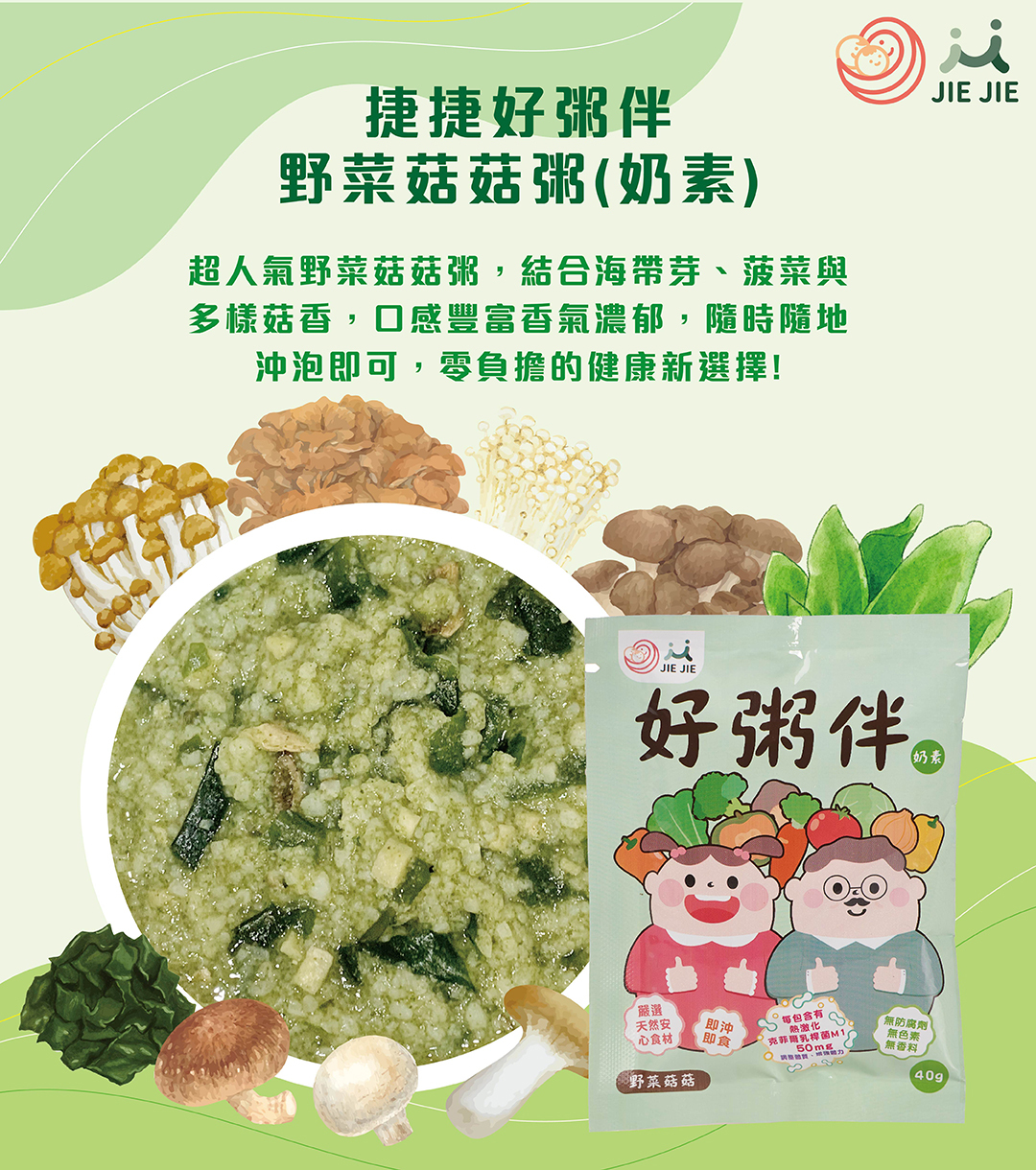 品名:捷捷好粥伴-野菜菇菇粥 (奶素)