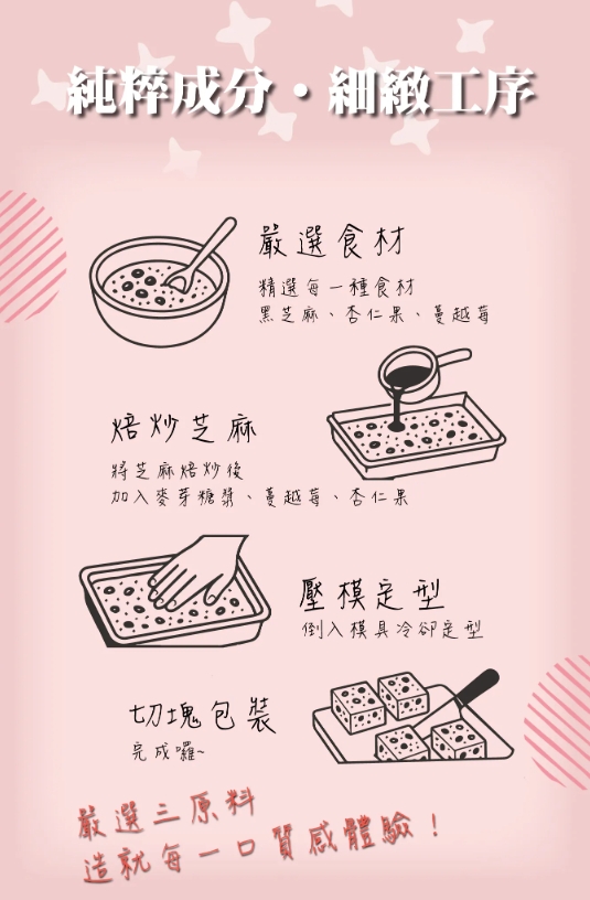 本產品含芝麻,不適合對芝麻過敏體質者食用。