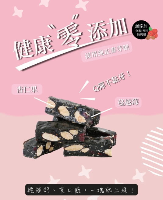 麥芽糖、黑芝麻粉、蔓越莓乾 、🫐杏仁果 🌰、黑芝麻粒、樹薯澱粉、鹽 🧂