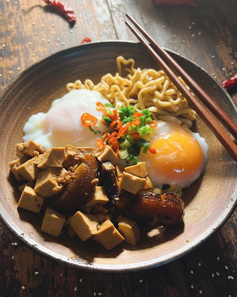 可以加一點燙青菜,或一顆溏心蛋鋪上去,就很好吃了。不用太多技巧,也不需要花太多時間,一碗簡單的麵,也能有被療癒的感覺。