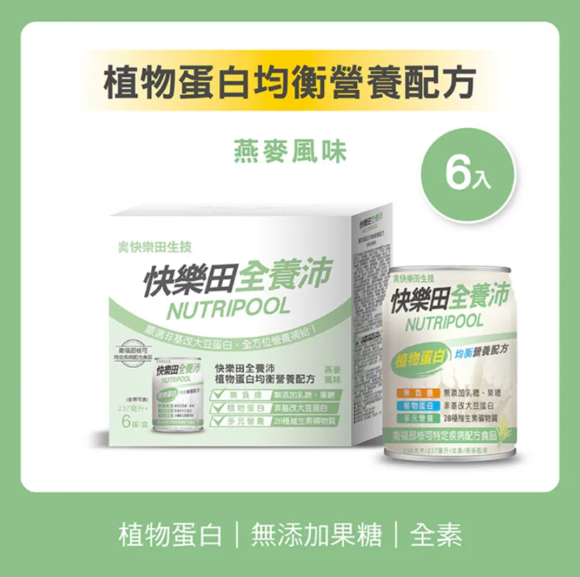 【特食】快樂田全養沛|植物蛋白均衡營養配方(全素/無添加果糖/燕麥風味) 6入、24入