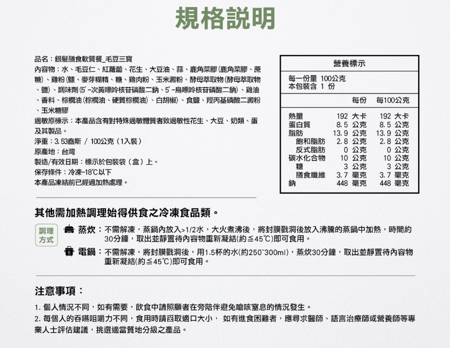 來自天然食材烹調,經由專業細化均質處理技術,保留菜餚的風味,並且無防腐劑,經典台式傳統風味,給予長者拾回吃的樂趣及尊嚴。 Q8:杯子盛裝容器可以耐熱嗎?